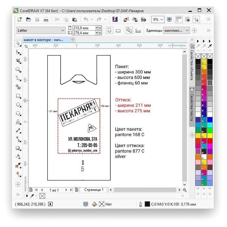 - Печатный оттиск меньше размера пакета на 2 см от каждого края